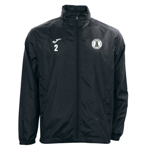 Light rainjacket with zipper, pockets and concealed hood. Club badge is embroidered. Small squad number is included in the price